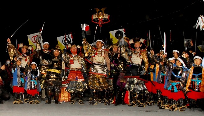 この日の夜は、鎧・冑に身を固めた武者たちが、ホラ貝や陣太鼓の音も勇ましく、歴史絵巻さながらに大通りを練り歩き、鑁阿寺で追儺式(豆まき)を行います。 (足利市公式サイトより引用)
