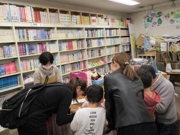 図書館の一角で、本棚に囲まれたテーブルを囲み、わからないところをスタッフに質問しながら、子供たちそれぞれが手を動かしていました。すぐそばで保護者が見守り、時に手を貸します。参加者の多くは、入園前の小さな子から、小学生くらいまで。プログラムによっては、乳児のお母さんが申し込むことも。気に入ったものだけ参加する子がいる一方、リピーターになり、毎月楽しみにしている子も多いといいます。